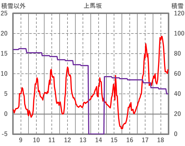 | 日 | 時 | 気温 | 降水 | 風向/風速 | 日照 | 積雪 | 降雪 |