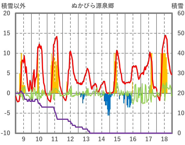 | 日 | 時 | 気温 | 降水 | 風向/風速 | 日照 | 積雪 | 降雪 |