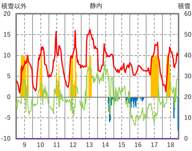 | 日 | 時 | 気温 | 降水 | 風向/風速 | 日照 | 積雪 | 降雪 |