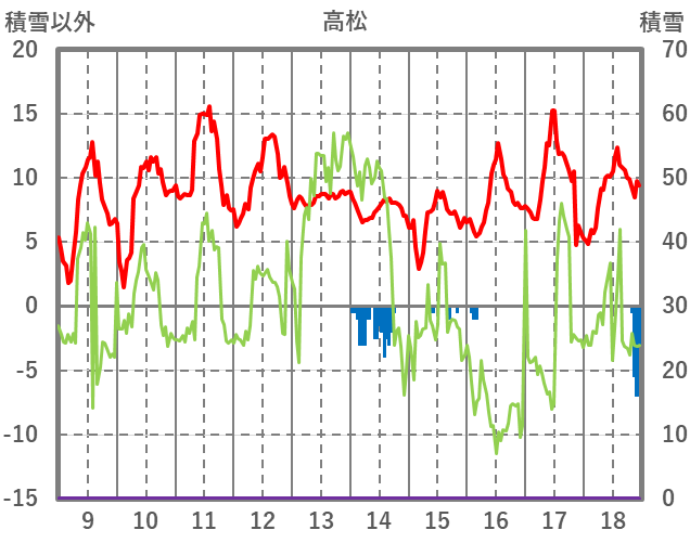| 日 | 時 | 気温 | 降水 | 風向/風速 | 日照 | 積雪 | 降雪 |