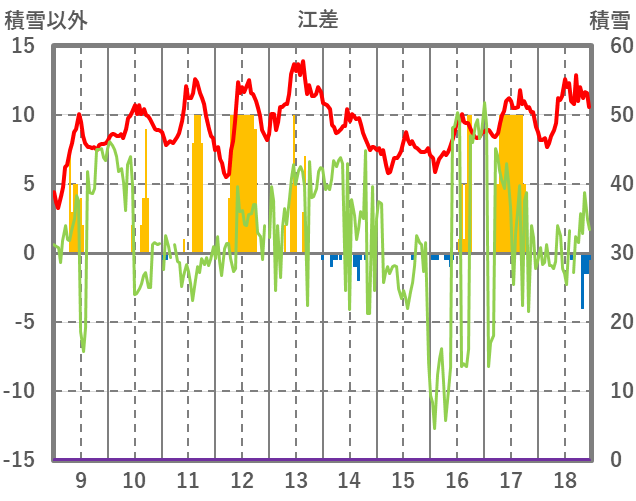 | 日 | 時 | 気温 | 降水 | 風向/風速 | 日照 | 積雪 | 降雪 |