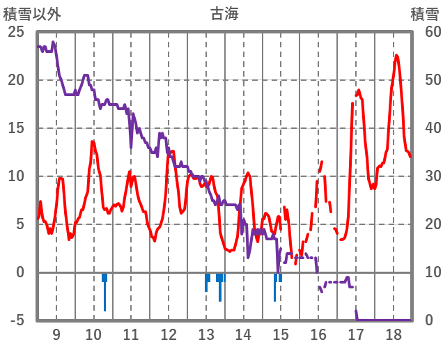 | 日 | 時 | 気温 | 降水 | 風向/風速 | 日照 | 積雪 | 降雪 |