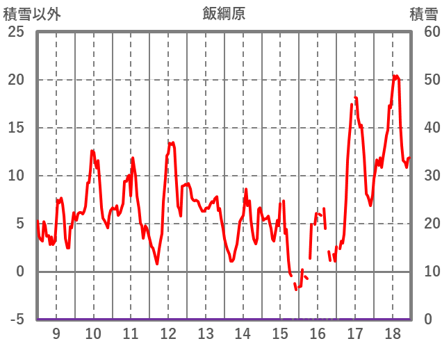 | 日 | 時 | 気温 | 降水 | 風向/風速 | 日照 | 積雪 | 降雪 |