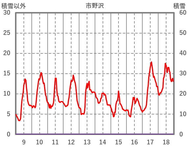 | 日 | 時 | 気温 | 降水 | 風向/風速 | 日照 | 積雪 | 降雪 |