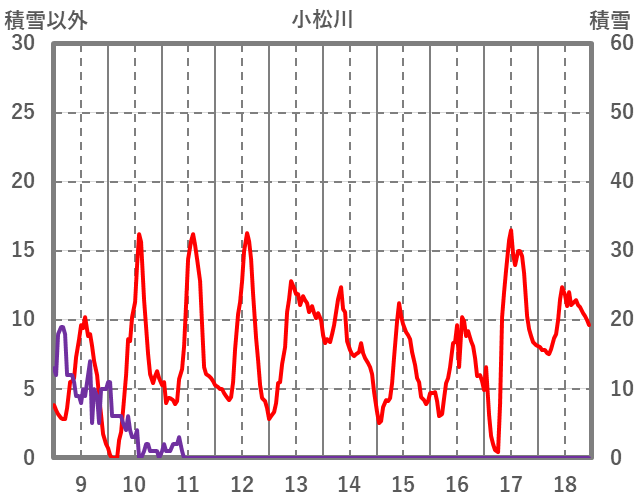 | 日 | 時 | 気温 | 降水 | 風向/風速 | 日照 | 積雪 | 降雪 |