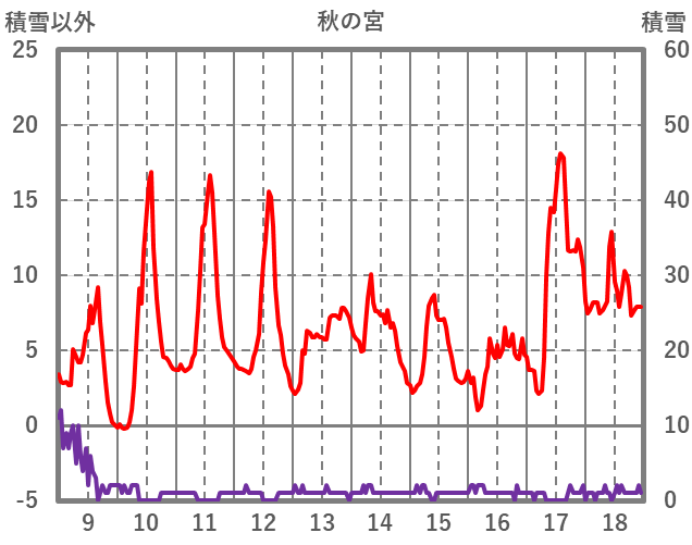 | 日 | 時 | 気温 | 降水 | 風向/風速 | 日照 | 積雪 | 降雪 |