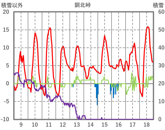 | 日 | 時 | 気温 | 降水 | 風向/風速 | 日照 | 積雪 | 降雪 |