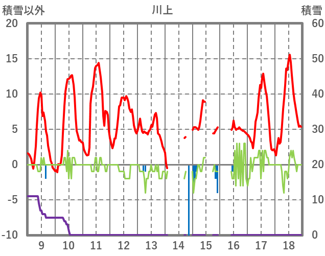 | 日 | 時 | 気温 | 降水 | 風向/風速 | 日照 | 積雪 | 降雪 |