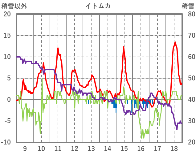 | 日 | 時 | 気温 | 降水 | 風向/風速 | 日照 | 積雪 | 降雪 |