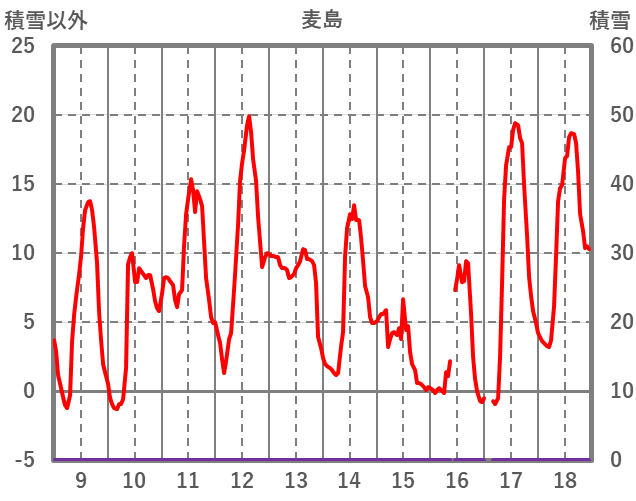 | 日 | 時 | 気温 | 降水 | 風向/風速 | 日照 | 積雪 | 降雪 |
