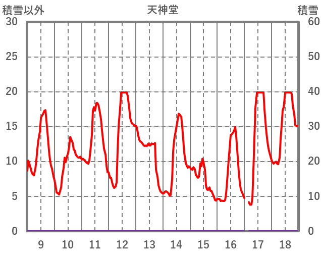 | 日 | 時 | 気温 | 降水 | 風向/風速 | 日照 | 積雪 | 降雪 |