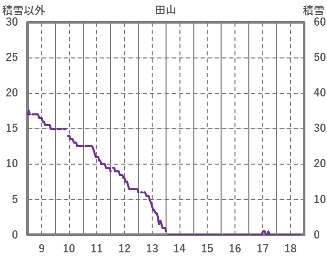 | 日 | 時 | 気温 | 降水 | 風向/風速 | 日照 | 積雪 | 降雪 |