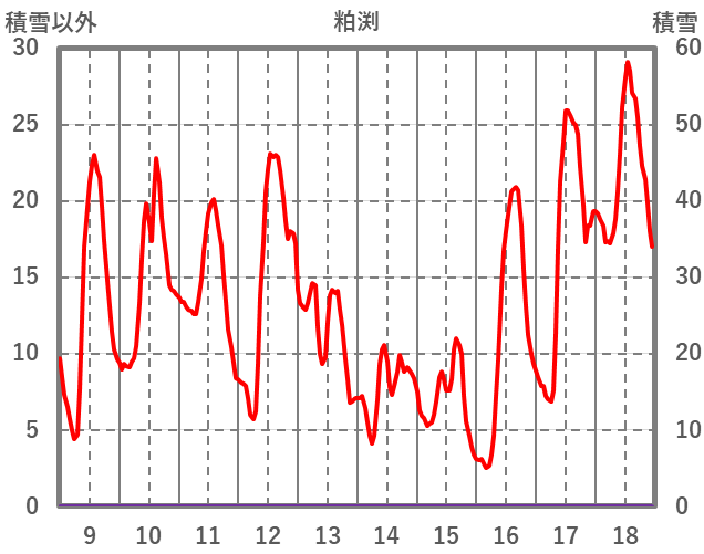 | 日 | 時 | 気温 | 降水 | 風向/風速 | 日照 | 積雪 | 降雪 |