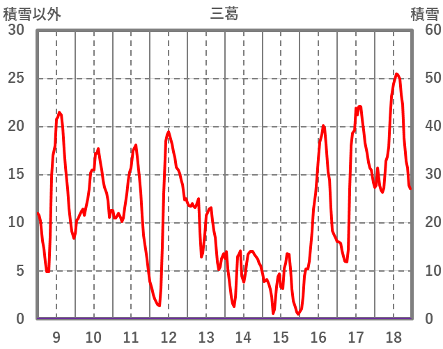| 日 | 時 | 気温 | 降水 | 風向/風速 | 日照 | 積雪 | 降雪 |