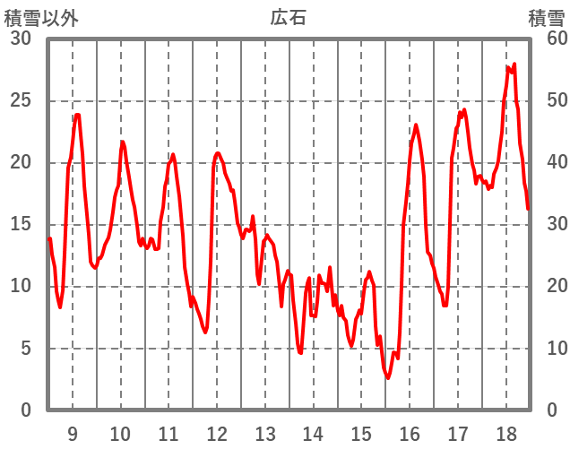 | 日 | 時 | 気温 | 降水 | 風向/風速 | 日照 | 積雪 | 降雪 |