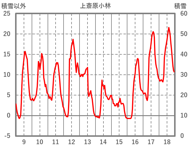 | 日 | 時 | 気温 | 降水 | 風向/風速 | 日照 | 積雪 | 降雪 |