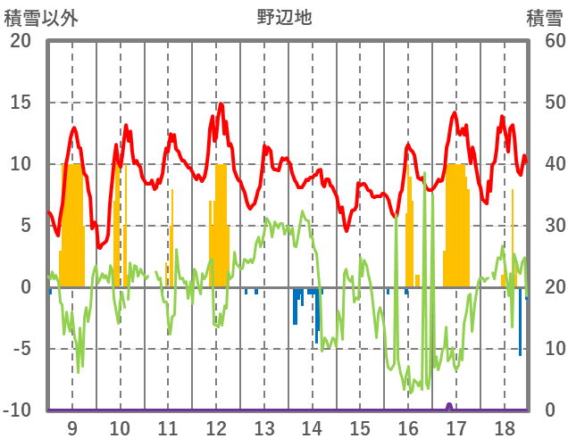 | 日 | 時 | 気温 | 降水 | 風向/風速 | 日照 | 積雪 | 降雪 |