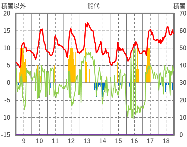 | 日 | 時 | 気温 | 降水 | 風向/風速 | 日照 | 積雪 | 降雪 |