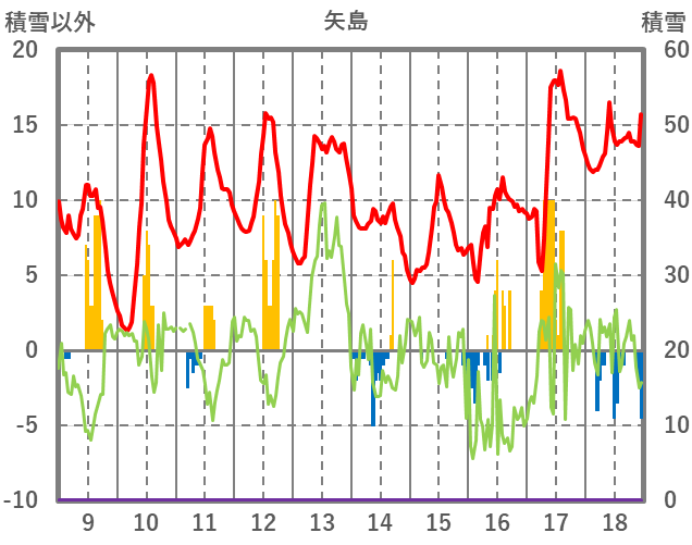 | 日 | 時 | 気温 | 降水 | 風向/風速 | 日照 | 積雪 | 降雪 |