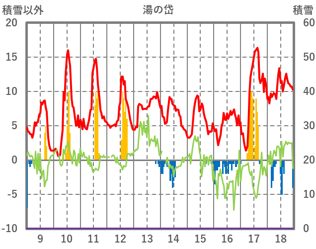 | 日 | 時 | 気温 | 降水 | 風向/風速 | 日照 | 積雪 | 降雪 |