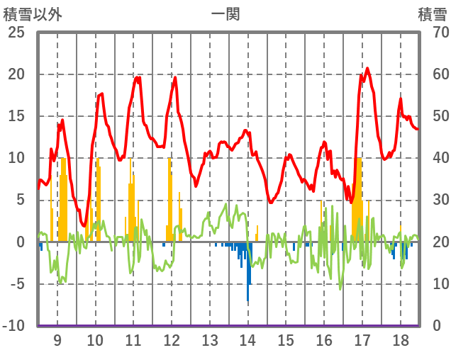| 日 | 時 | 気温 | 降水 | 風向/風速 | 日照 | 積雪 | 降雪 |