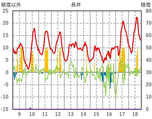 | 日 | 時 | 気温 | 降水 | 風向/風速 | 日照 | 積雪 | 降雪 |