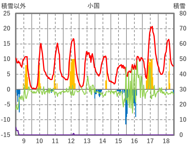 | 日 | 時 | 気温 | 降水 | 風向/風速 | 日照 | 積雪 | 降雪 |