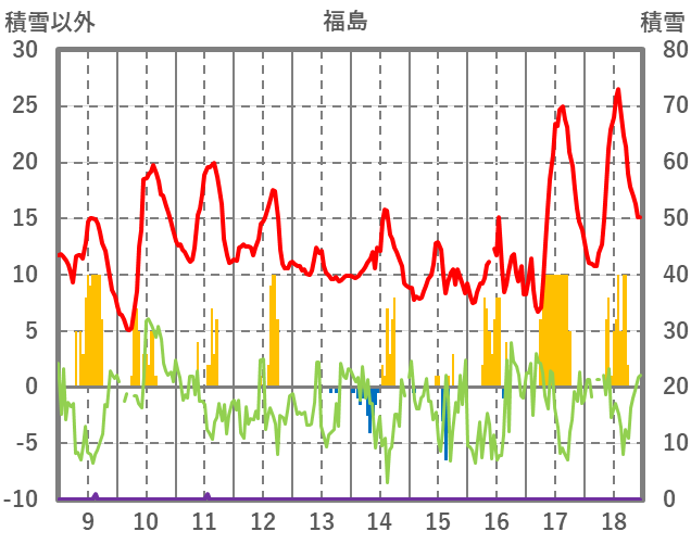 | 日 | 時 | 気温 | 降水 | 風向/風速 | 日照 | 積雪 | 降雪 |
