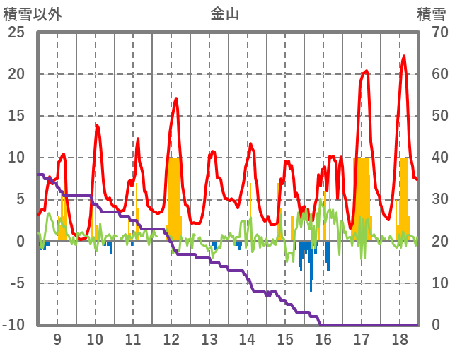 | 日 | 時 | 気温 | 降水 | 風向/風速 | 日照 | 積雪 | 降雪 |