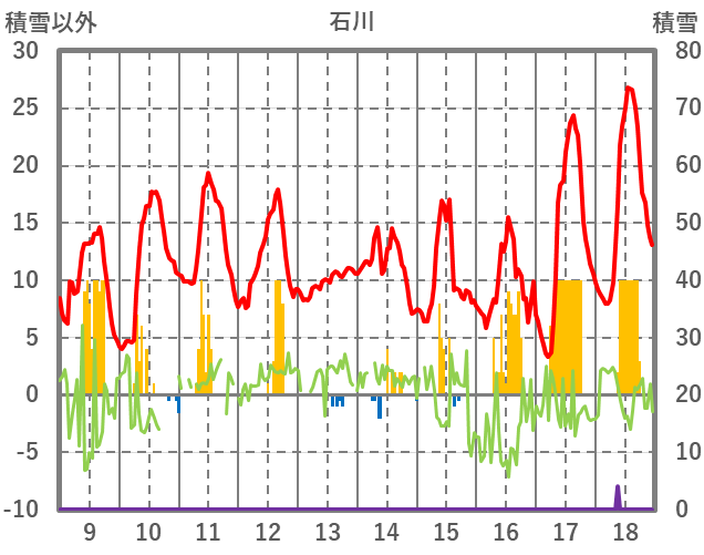 | 日 | 時 | 気温 | 降水 | 風向/風速 | 日照 | 積雪 | 降雪 |