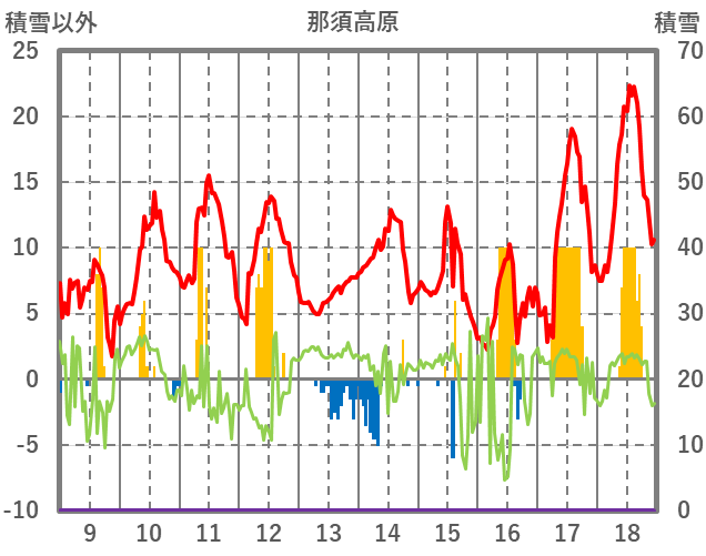 | 日 | 時 | 気温 | 降水 | 風向/風速 | 日照 | 積雪 | 降雪 |