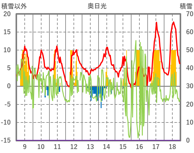 | 日 | 時 | 気温 | 降水 | 風向/風速 | 日照 | 積雪 | 降雪 |