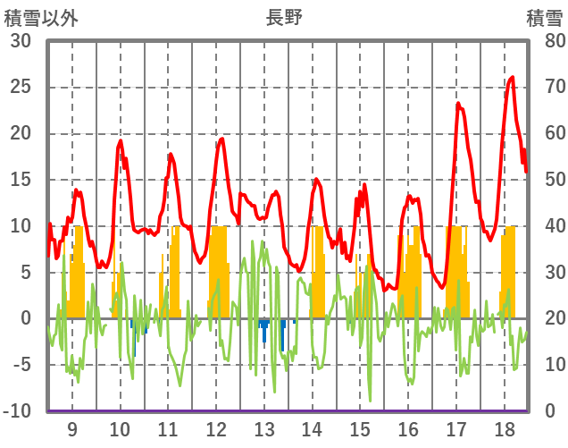 | 日 | 時 | 気温 | 降水 | 風向/風速 | 日照 | 積雪 | 降雪 |