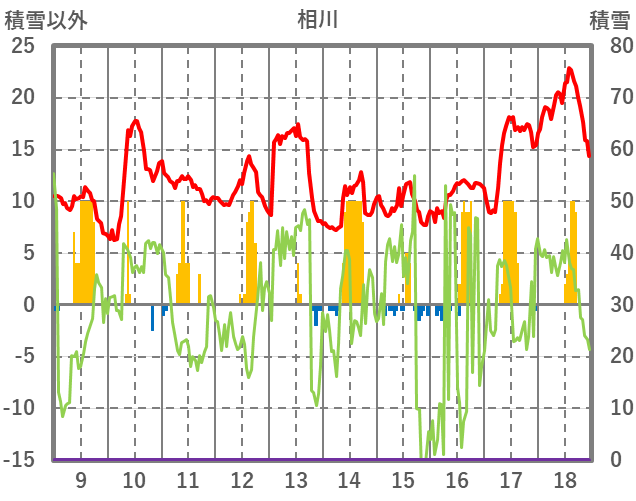 | 日 | 時 | 気温 | 降水 | 風向/風速 | 日照 | 積雪 | 降雪 |