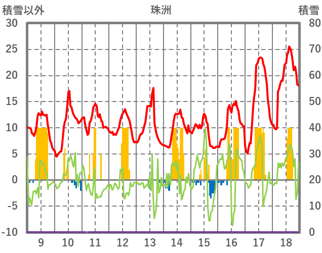 | 日 | 時 | 気温 | 降水 | 風向/風速 | 日照 | 積雪 | 降雪 |