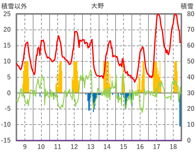 | 日 | 時 | 気温 | 降水 | 風向/風速 | 日照 | 積雪 | 降雪 |