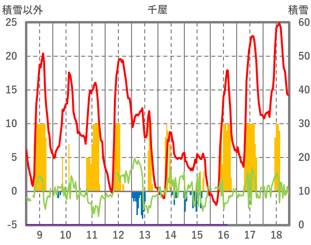 | 日 | 時 | 気温 | 降水 | 風向/風速 | 日照 | 積雪 | 降雪 |
