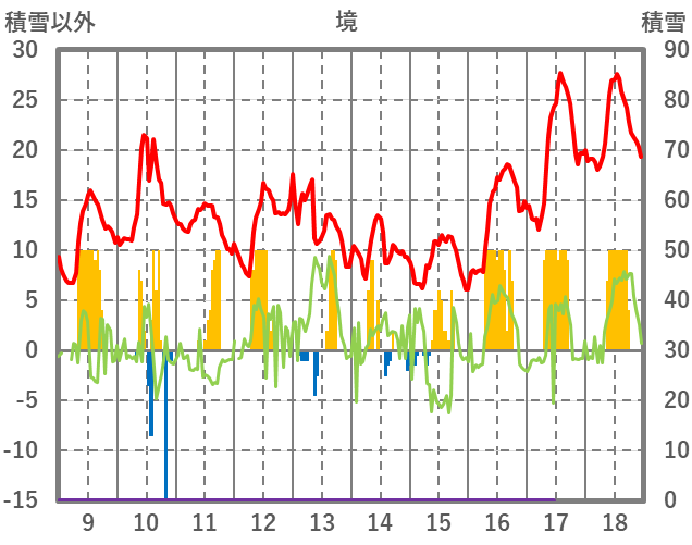 | 日 | 時 | 気温 | 降水 | 風向/風速 | 日照 | 積雪 | 降雪 |