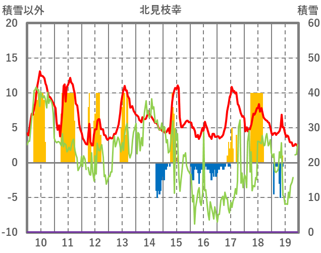 | 日 | 時 | 気温 | 降水 | 風向/風速 | 日照 | 積雪 | 降雪 |