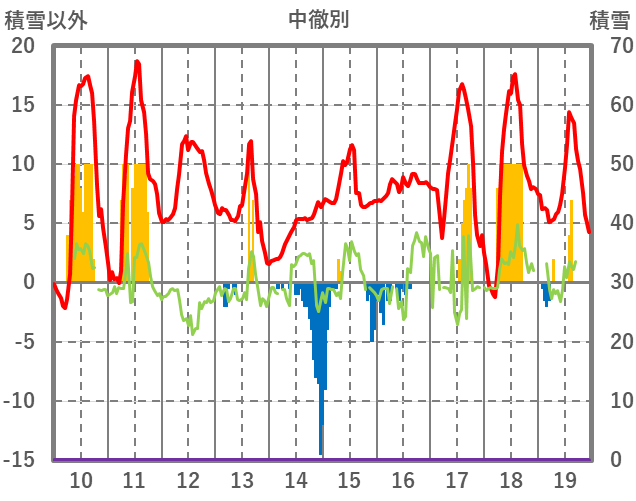 | 日 | 時 | 気温 | 降水 | 風向/風速 | 日照 | 積雪 | 降雪 |