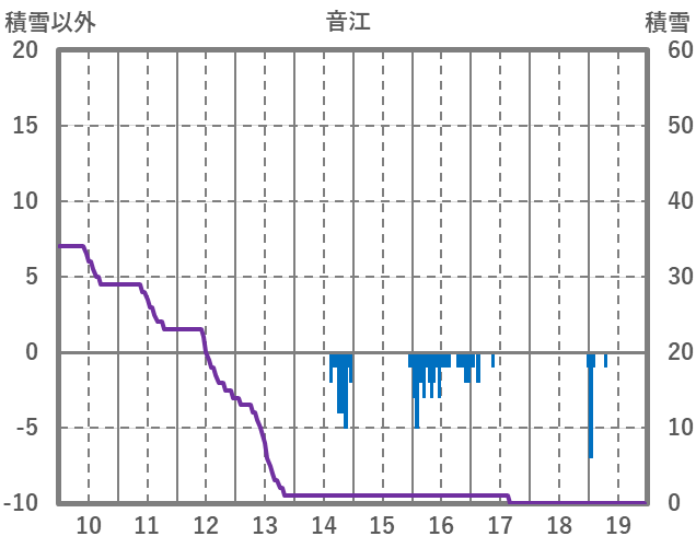 | 日 | 時 | 気温 | 降水 | 風向/風速 | 日照 | 積雪 | 降雪 |