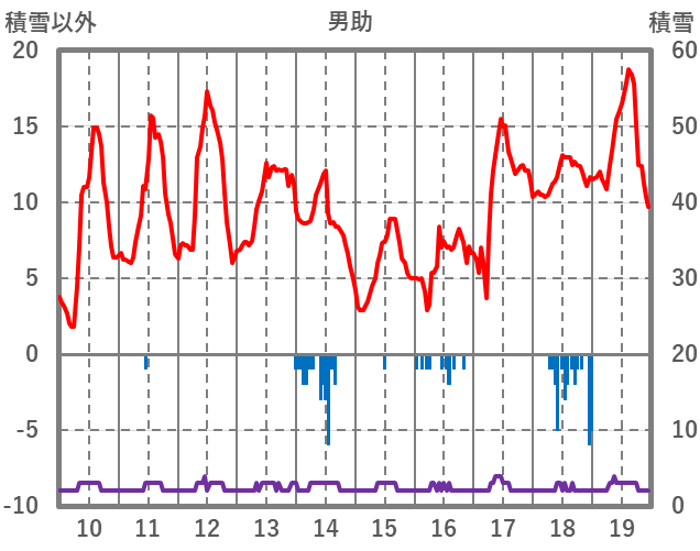| 日 | 時 | 気温 | 降水 | 風向/風速 | 日照 | 積雪 | 降雪 |