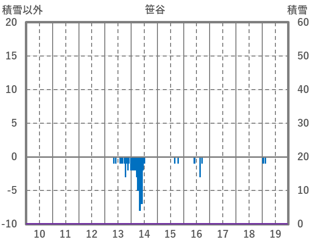 | 日 | 時 | 気温 | 降水 | 風向/風速 | 日照 | 積雪 | 降雪 |