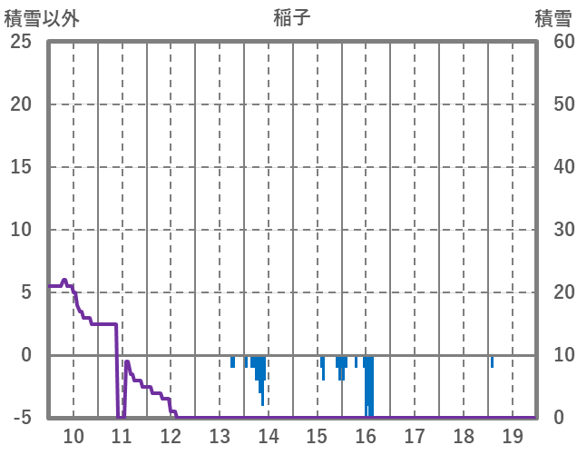 | 日 | 時 | 気温 | 降水 | 風向/風速 | 日照 | 積雪 | 降雪 |