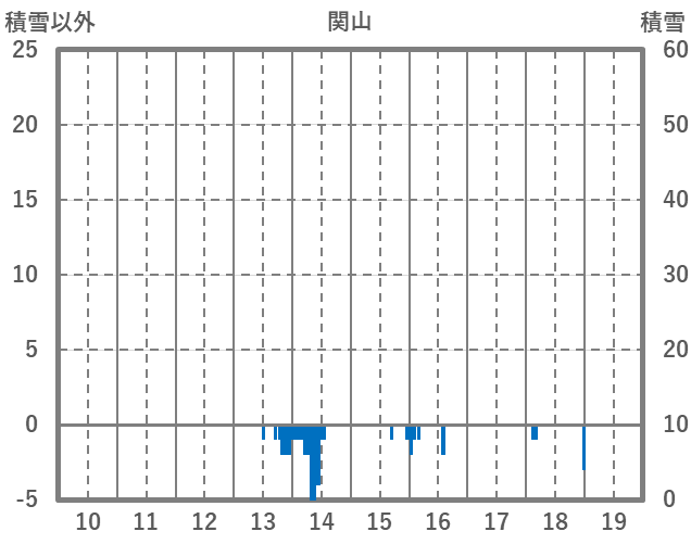 | 日 | 時 | 気温 | 降水 | 風向/風速 | 日照 | 積雪 | 降雪 |