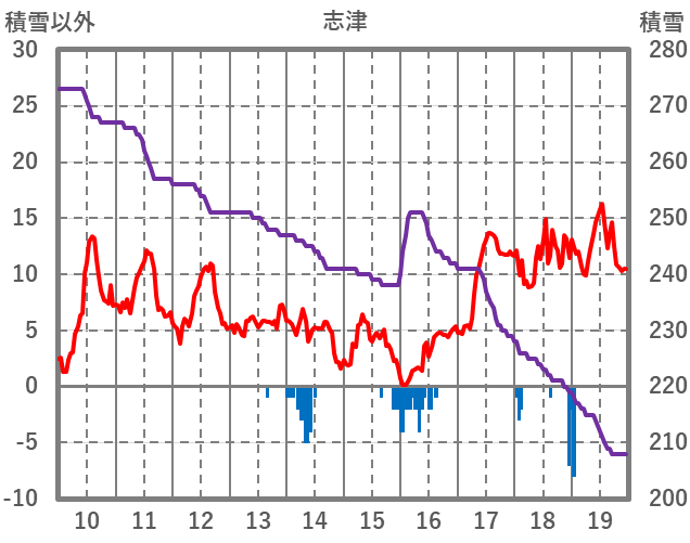 | 日 | 時 | 気温 | 降水 | 風向/風速 | 日照 | 積雪 | 降雪 |