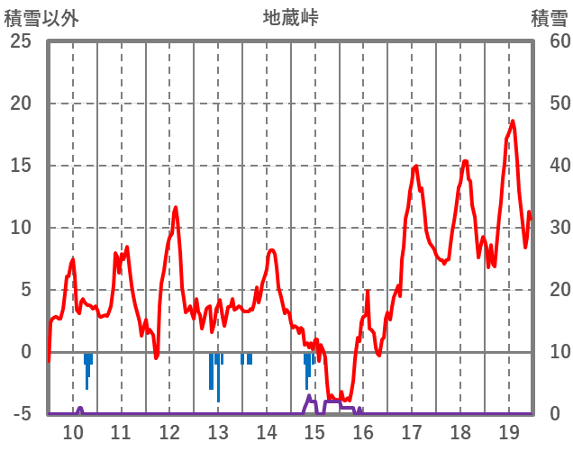 | 日 | 時 | 気温 | 降水 | 風向/風速 | 日照 | 積雪 | 降雪 |