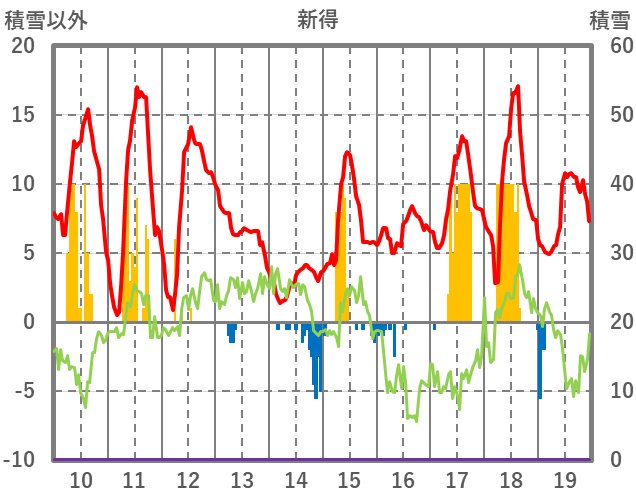| 日 | 時 | 気温 | 降水 | 風向/風速 | 日照 | 積雪 | 降雪 |