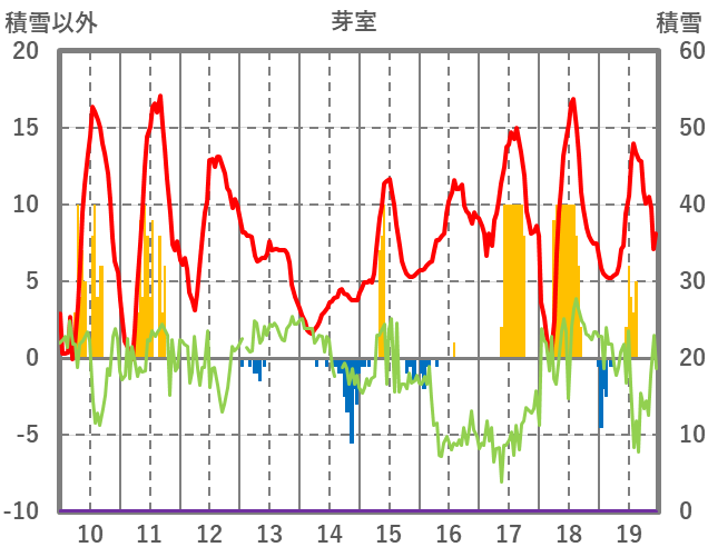 | 日 | 時 | 気温 | 降水 | 風向/風速 | 日照 | 積雪 | 降雪 |