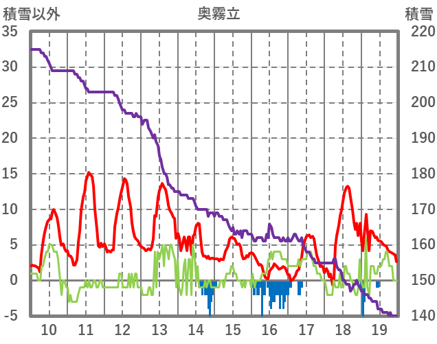 | 日 | 時 | 気温 | 降水 | 風向/風速 | 日照 | 積雪 | 降雪 |